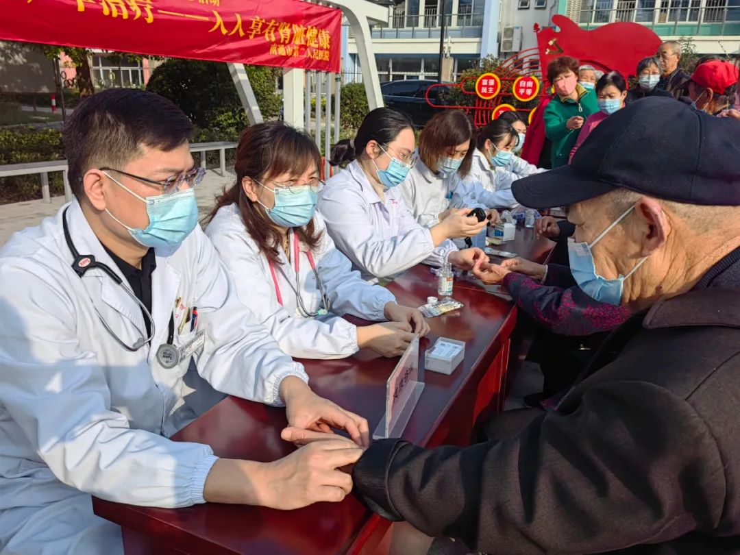 血液净化中心护士长黄卫红带领护理团队为大家免费测血糖、量血压,进行健康指导。