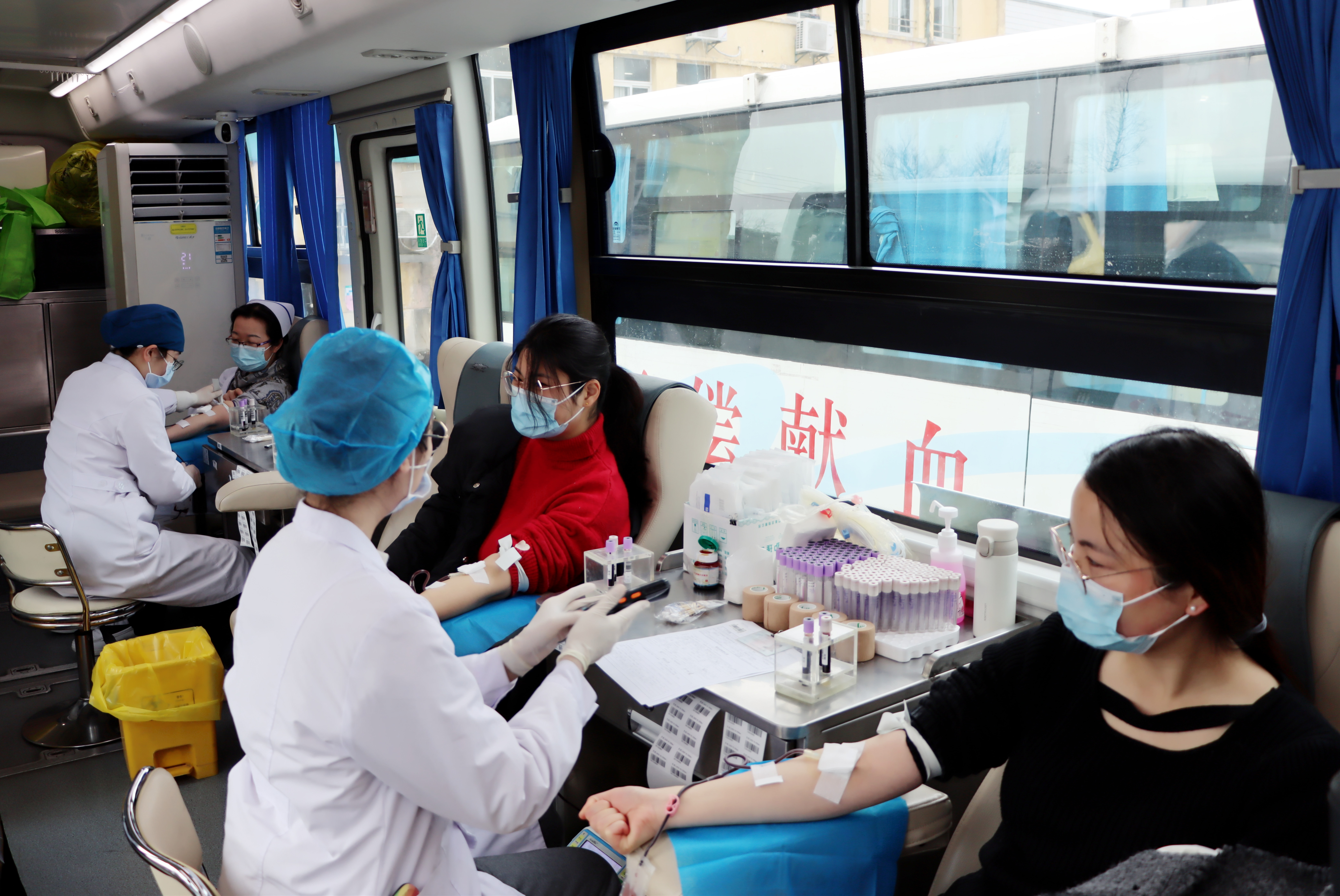 行政区就排满了前来献血的医务人员,登记、填表、化验……不少多次献血的医务人员对这些流程早已轻车熟路。刚刚结束急诊夜班的B超室医生徐珍玉说:“夜班刚结束,我就赶过来了,无偿献血可以帮助很多人,尽自己的微薄之力,感觉挺好的。”