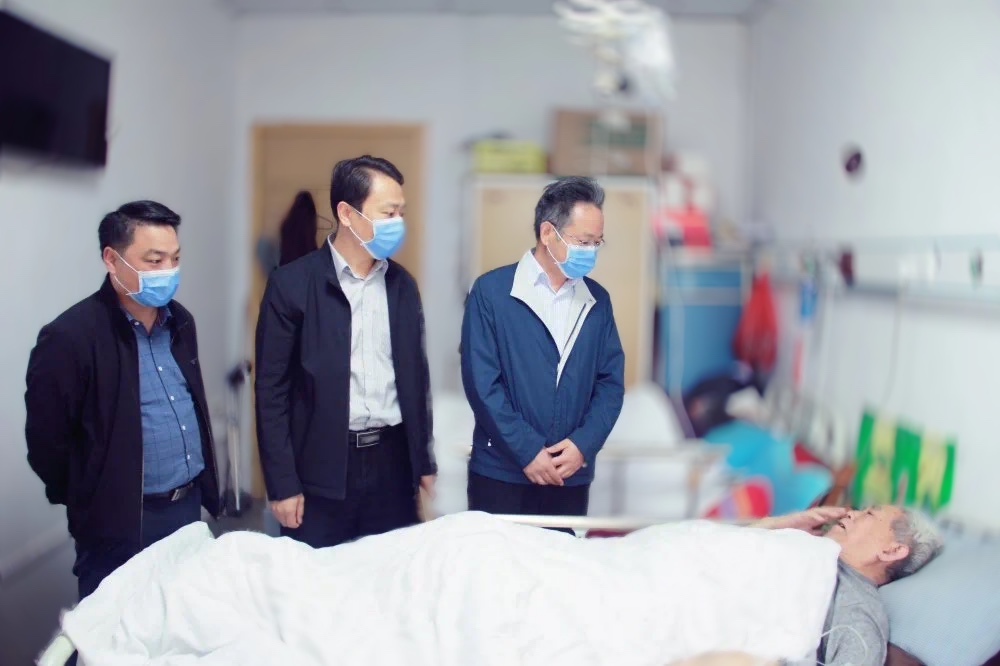 离休老干部于永海的病房,代表院党委亲切看望抗美援朝老战士,向他转达全院职工对老战士的问候和敬意,并向他转发了“中国人民志愿军抗美援朝出国作战70周年纪念章”。杨建斌院长、任建兵书记亲切询问了解于老的病情、身体近况和生活情况,表达了亲切的问候和崇高的敬意。表示他们身上体现出的艰苦朴素、无私奉献的优良革命传统必将激励全院干部职工干事创业、全心全意为人民服务。