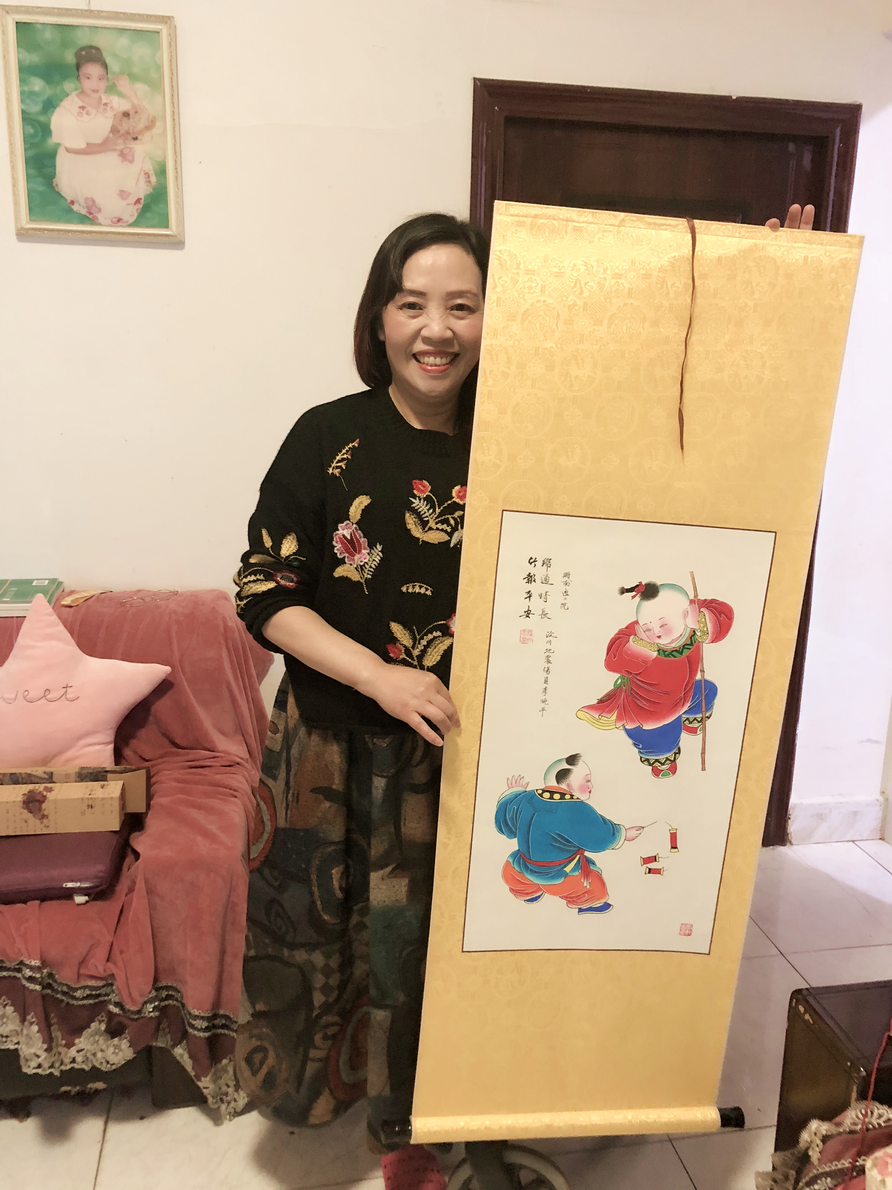 收治的汶川地震伤员李晓平寄来她亲自绘画的一幅绵竹年画作品,并且上书“竹报平安,绵通情长——赠金宝博体育