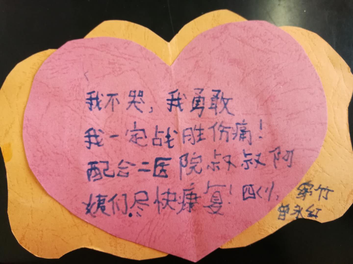 正因为有着这样像母亲一样的呵护和关怀,十年前的曾永红用左手努力写下“我不哭,我勇敢”的字句。