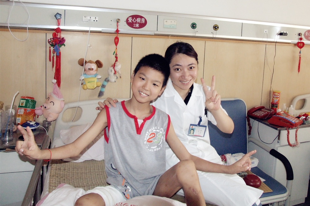 的日子,念念不忘的是护士缪海峰和丁婕带他出去玩、一起吃烧烤的事。当时经过我院骨科医护人员的专业救治,右腿截肢的龙顺红恢复很好,他是所有人都喜爱的“调皮小弟弟”。