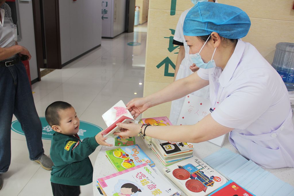 “小朋友,你喜欢看什么书呀,自己挑,今天每人免费送一本。”6月1日,金宝博体育 儿科门诊导医台的护士李勤学正在给来院就诊的小朋友派送儿童读物。“阿姨,我想要这本。”8岁的小浩说。