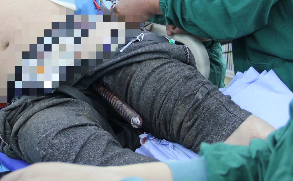 3月27中午12点50分,一位从高处跌落,钢筋贯穿伤的伤者被送至金宝博体育|全面赛事直播与精准预测|安全快捷的体育竞猜体验 急诊科。患者送到金宝博体育 时,只见一根直径约2厘米粗的钢筋露在体外,裸露的钢筋长达20多厘米;钢筋从其左侧大腿内侧刺破皮肤插进盆腔。该伤者正是朱先生,他是一名建筑工人,中午在陈桥某工地施工过程中不慎从3米高处摔落,导致钢筋刺入体内。