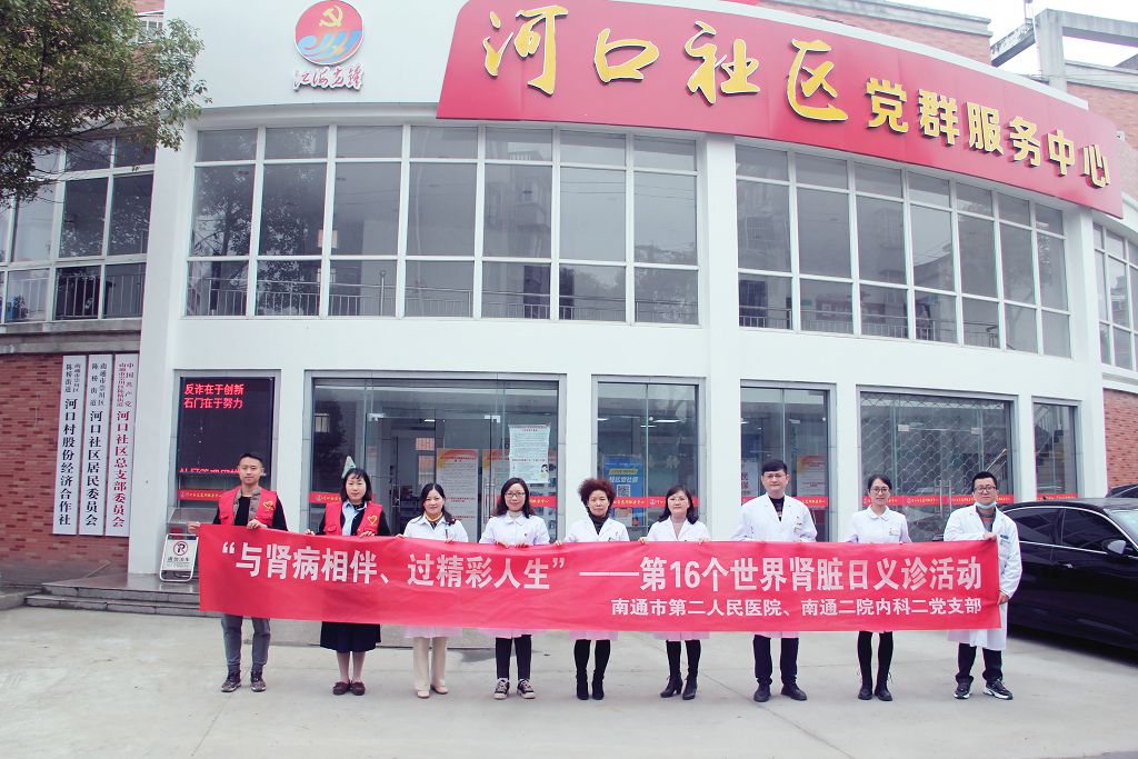 内二党支部、肾内科以及市场部的党员志愿者和医务志愿者们,冒着小雨前往陈桥街道河口社区天玺花园,开展“与肾病相伴,过精彩人生”的爱心义诊活动。